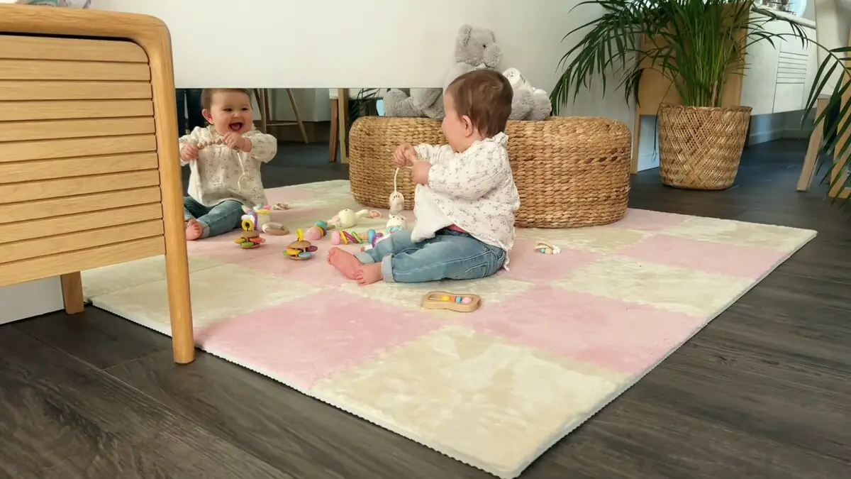 Très heureuse de ce produit! Nous avons recommandé des pièces pour élargir le périmètre de notre tapis! Notre fils de 5 mois l’utilise chaque jour et cela lui fait un super filet de sécurité lorsqu’il apprend à se tourner et à se retourner! Je le recommande